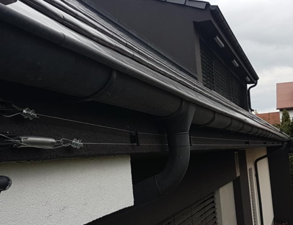 pod pokrycie dachowe (rynny, słupy). Linki podłączone są do elektryzatora generującego krótkie impulsy elektryczne,